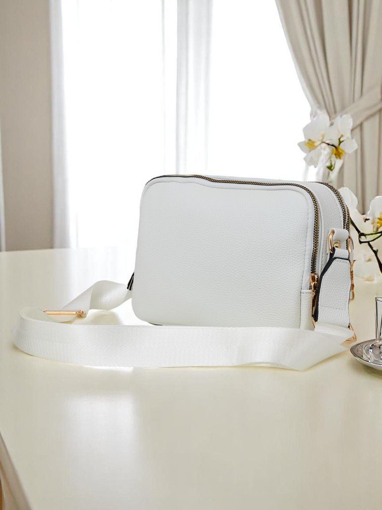 - Malá kabelka z eko kože s elegantným embossovaním. Má 2 priehradky, 3 vrecká a nastaviteľný popruh — ideálna na každodenné nosenie, spája štýl s funkčnosťou.