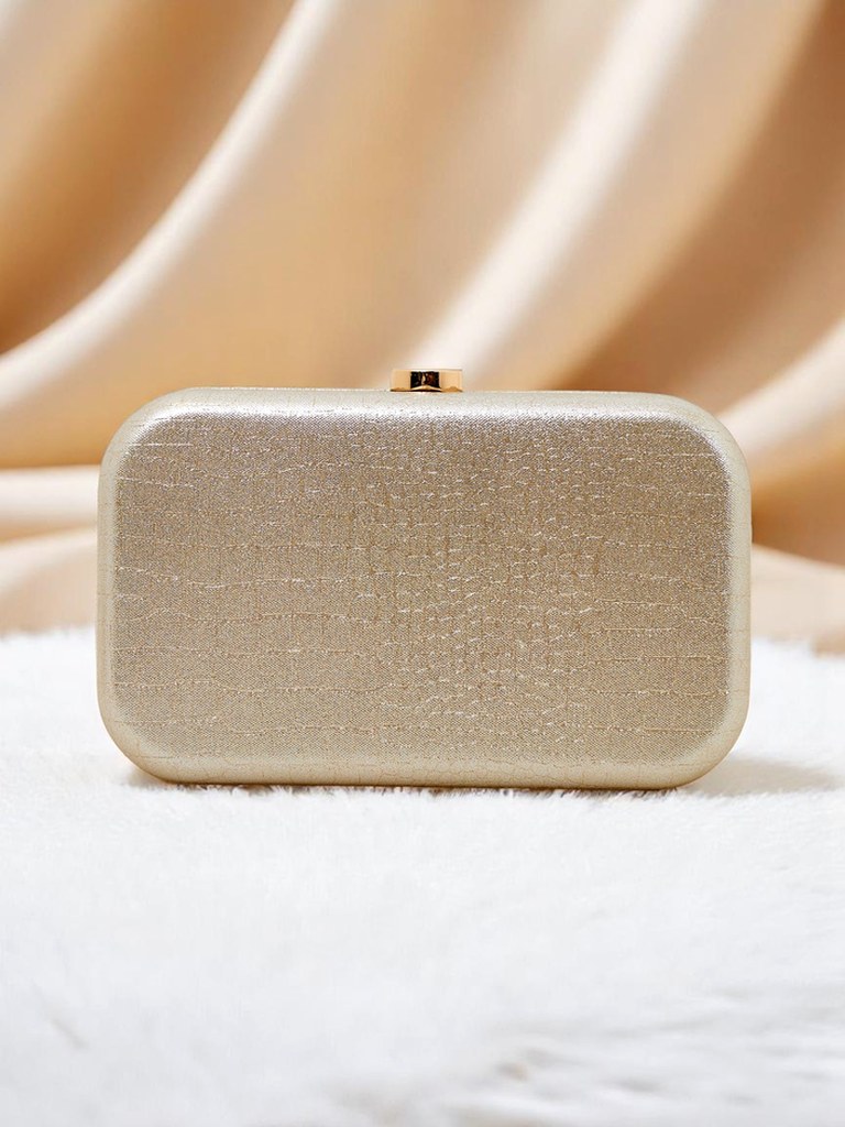 - Listová kabelka vyrobená z eko-kože, potiahnutá látkou so trblietavou niťou a jemným reliéfom. Zapínanie na cvok, s odnímateľným retiazkovým popruhom—elegancia a lesk v jednom.