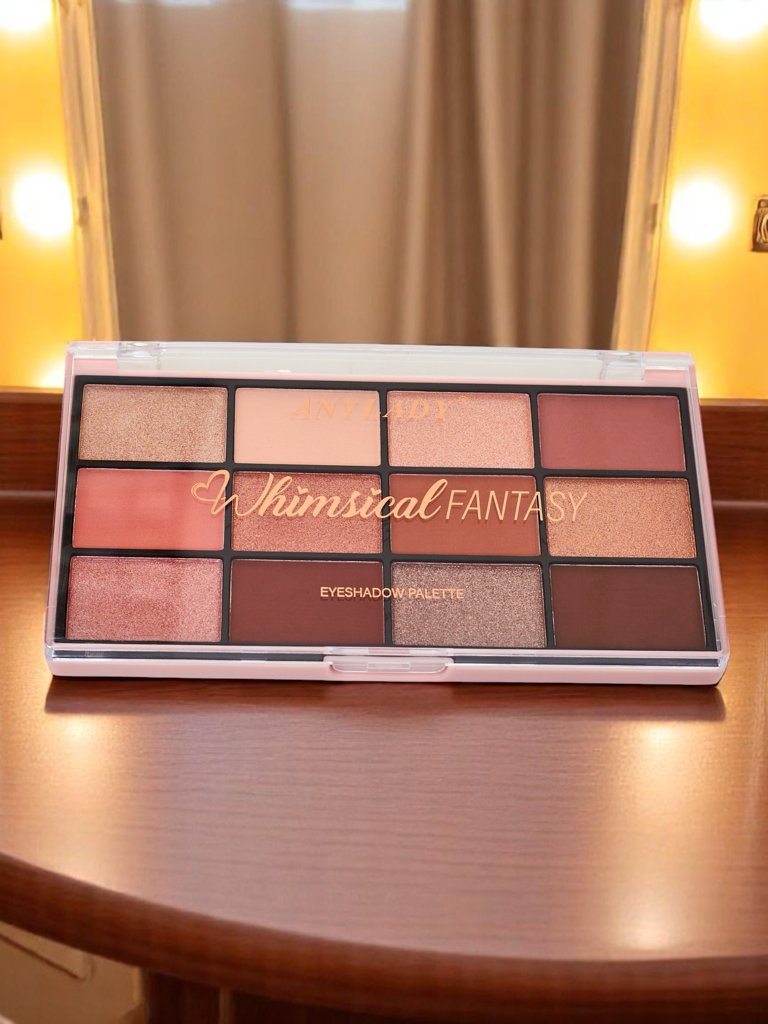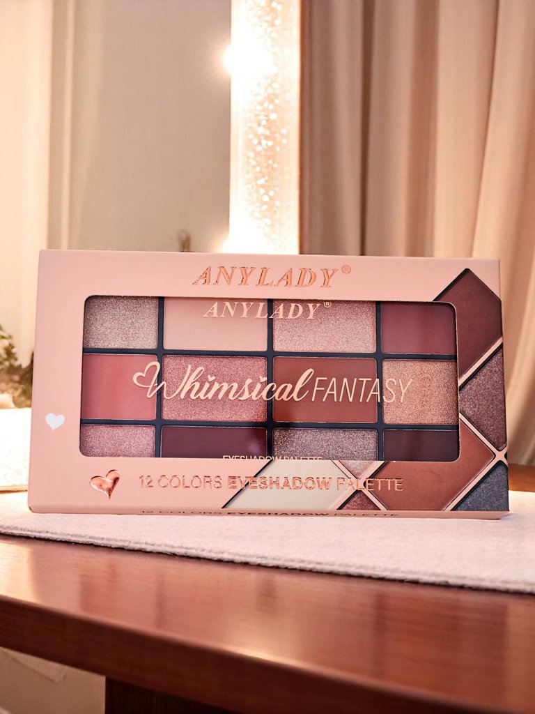 ANYLADY Paleta 12 očných tieňov s trblietavými a matnými finišmi Champagne Ruby Glamour