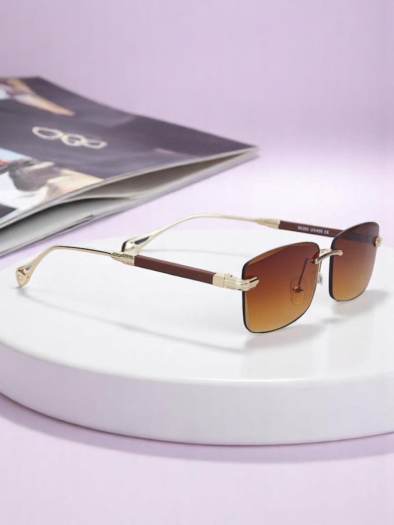 - Malé, úzke slnečné okuliare s obdĺžnikovým tvarom a kovovým rámom. Vintage štýl v modernej edícii – ideálne pre fanúšikov odvážnych retro doplnkov.