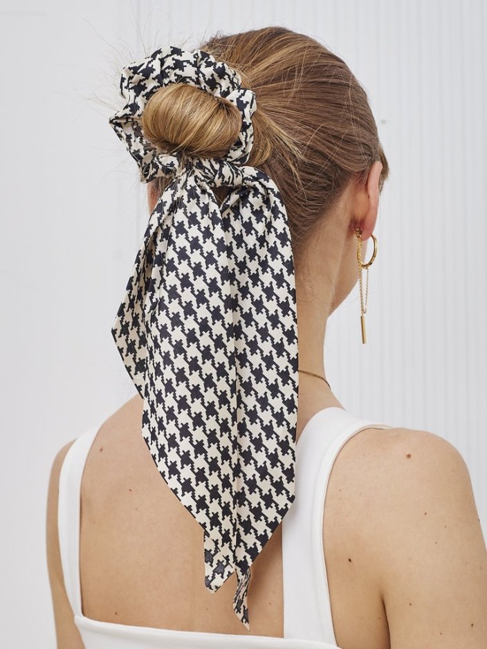 - Gumička do vlasov s dlhou stuhou v klasickom károvanom vzore. Štýlový a praktický doplnok, ktorý oživí každý účes, dodá mu charakter a módny, nadčasový vzor.