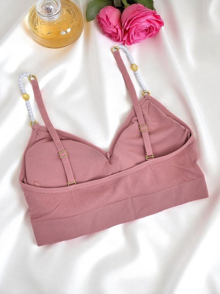 • Dámska vystužená športová podprsenka s ozdobnými, nastaviteľnými ramienkami, bez zapínania. Vyberateľné vypchávky. Rebrovaný materiál spája štýl s pohodlím – ideálna na cvičenie aj každodenné nosenie.