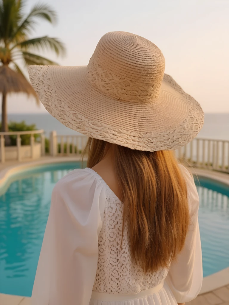 - Slamený klobúk so širokým okrajom a dekoratívnym pletením. Štýlový a vzdušný, ideálny na leto — spája prirodzený pôvab s eleganciou a účinnou ochranou pred slnkom.