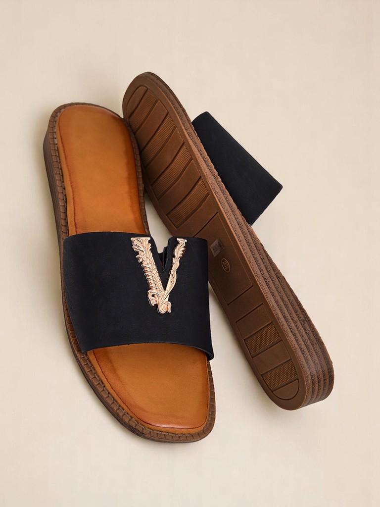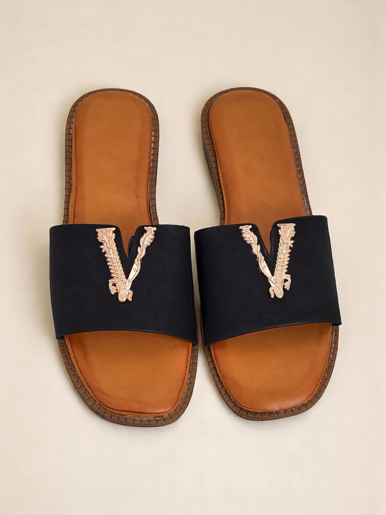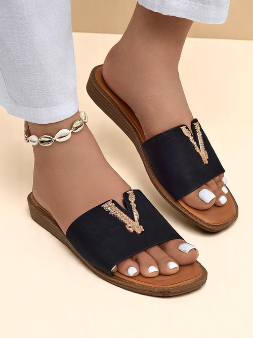 Ženski natikači Vittoria so kombinacija brezčasne elegance z udobjem, ki ga navdihuje sredozemska lahkotnost. Zgornji del je izdelan iz visokokakovostnega ekološkega usnja, ki ga odlikujejo trajnost in mehkoba, hkrati pa zagotavlja zračnost v vročih dneh. Spodnji del čevlja je nedrseč podplat iz termoplastične gume (TPR), ki slovi po odpornosti proti obrabi in zagotavlja lahkotnost vsakega koraka.Največja prednost modela Vittoria je okrasni element v zlati barvi, nameščen na širokem traku - nanaša se na motive starega Rima in celotnemu stajlingu dodaja luksuzen značaj. Mehak, ergonomski vložek zagotavlja udobje med dolgotrajno uporabo.Ti natikači se odlično podajo k ležernim, poletnim maksi oblekam, omogočajo izpostavitev stopala in dodajo lahkotnost celotnemu videzu. Druga možnost je kombinacija z jeans kratkimi hlačami in laneno srajco - idealna rešitev za počitniški sprehod po mestu. Tretja zanimiva možnost je kombinacija natikačev Vittoria z elegantnimi hlačami culotte in preprostim topom, ki ustvarja minimalističen, a hkrati moden outfit za srečanje s prijatelji ali kosilo.Nega: priporočljivo je, da natikače čistite z mehko, rahlo vlažno krpo, se izogibate prekomernemu močenju in neposrednemu stiku z močnimi detergenti. Shranjujte v zračnem prostoru, najbolje v protiprašni vrečki.Trenutno v trendih obutve prevladujejo minimalistični natikači s prepoznavnim detajlom, ki poudarjajo individualni stil in se odlično podajo tako k klasiki kot modernim stajlingom. Model Vittoria je 'must-have' te sezone – brezčasen, prefinjen in ustvarjen za ženske, ki cenijo udobje in subtilno razkošje.