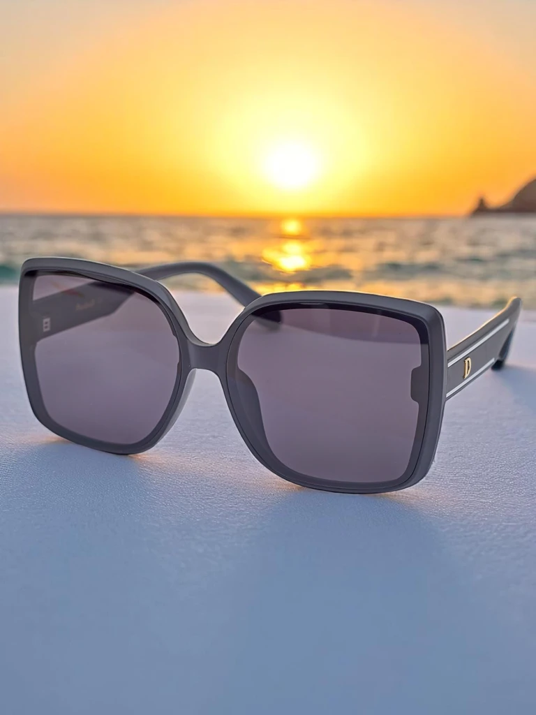 - Elegantné slnečné okuliare s výrazným, hranatým rámom. Prémiový štýl s prepracovanými detailmi – ideálne na štýlové outfity a módne akcenty.