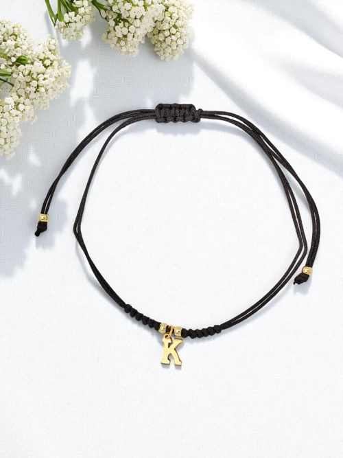 - Elegantný šnúrový náramok s nastaviteľnou dĺžkou, zdobený písmenom. Jemný a personalizovaný, ideálny na každodenné nosenie. Skvelá voľba pre tých, ktorí oceňujú jedinečné šperkové detaily a chcú dodať svojmu outfitu charakter.