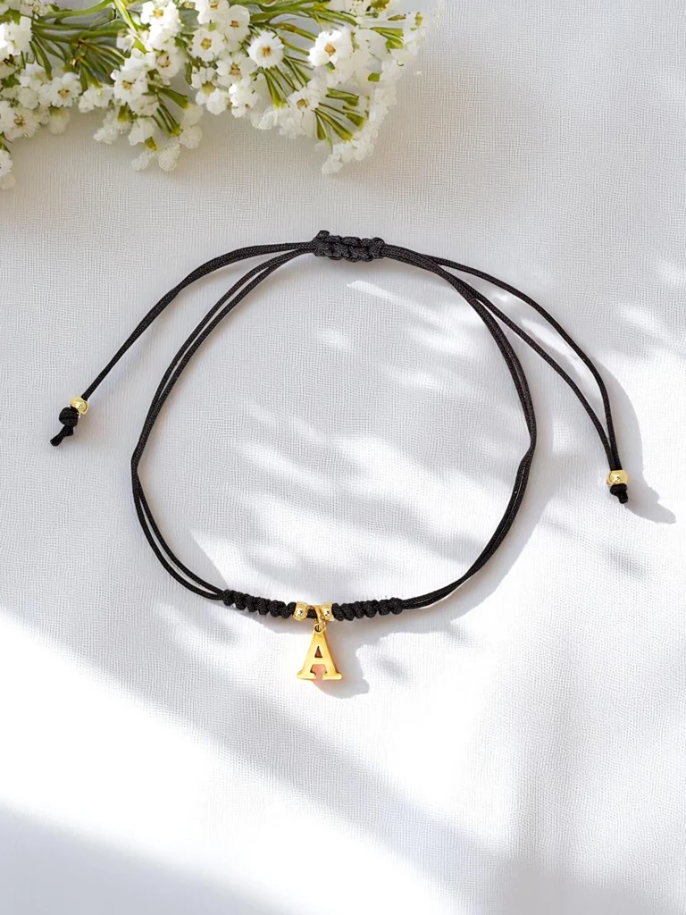 • Elegantný nastaviteľný náramok so šnúrkou, zdobený písmenom. Jemný a osobný, ideálny na každodenné nosenie. Ideálna voľba pre tých, ktorí oceňujú jedinečné akcenty v šperkoch, dodáva charakter každému outfitu.