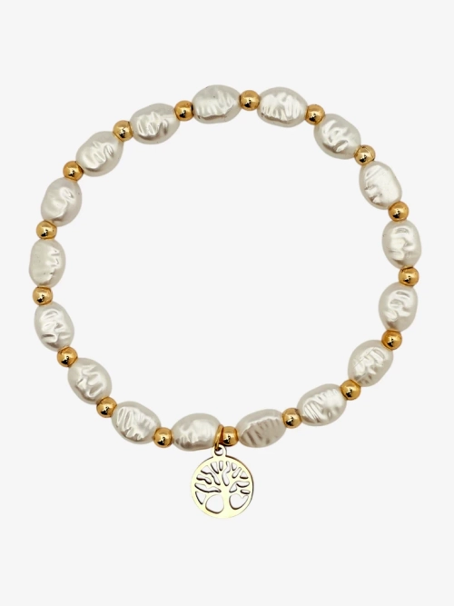 - Jemný dámsky náramok na gumičke, ozdobený perlami a korálkami. Jeho pôvab znásobuje krásny prívesok, ktorý nenápadne púta pozornosť. Ideálny na elegantné aj každodenné outfity so štipkou triedy.