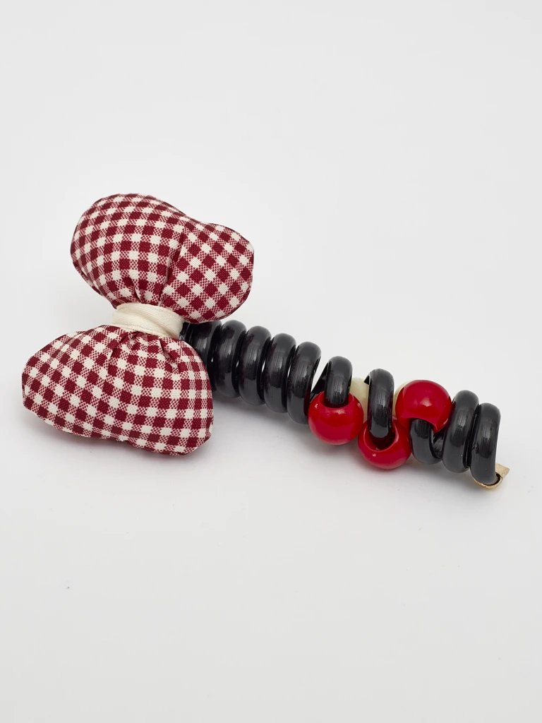 - Elastická gumička na vlasy v tvare špirály s roztomilou mašličkou. Poskytuje pevnú, no pritom jemnú fixáciu vlasov bez ich poškodenia. Štýlový a praktický doplnok, ktorý dodá každému účesu dievčenský šarm.