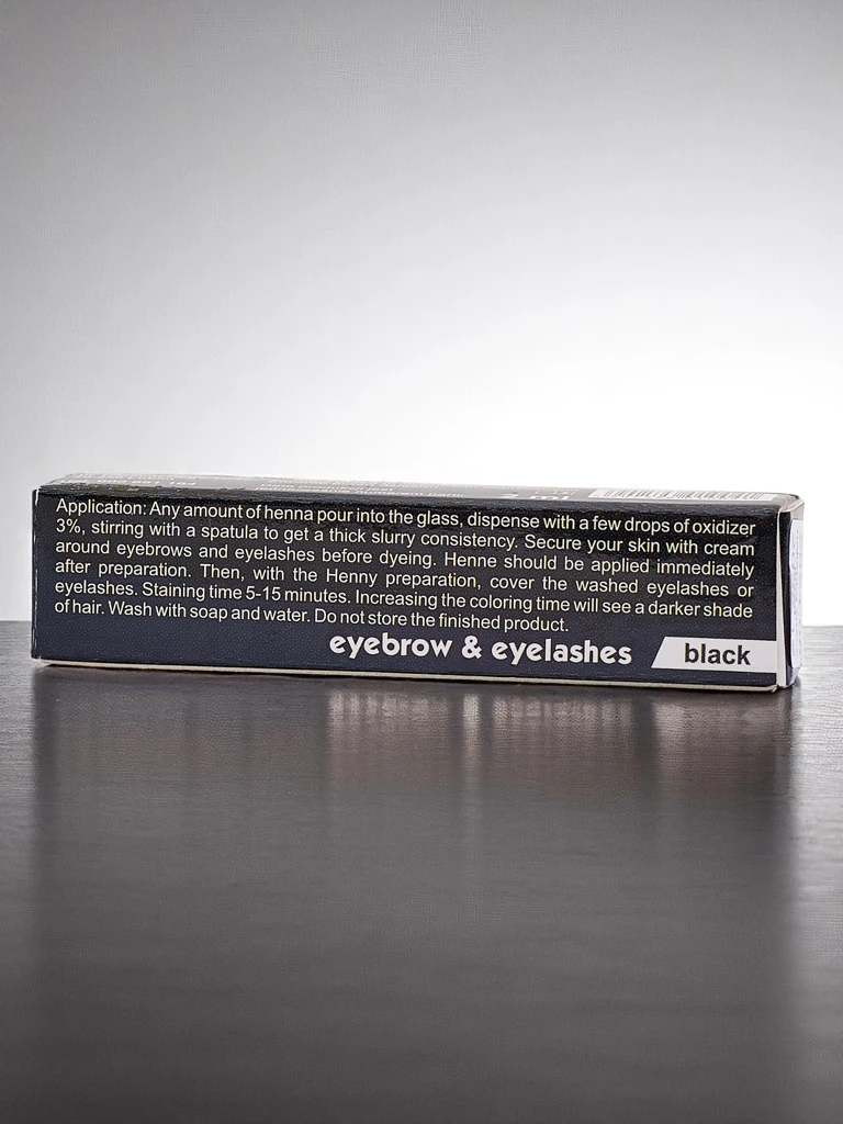 • Čierny práškový hennový farbivo na obočie a riasy intenzívne zvýrazňuje vzhľad, dodáva hlbokú, dlhotrvajúcu farbu. Prírodné zloženie poskytuje výrazný efekt obočia a rias až na 2 týždne. Ideálne na farbenie doma.