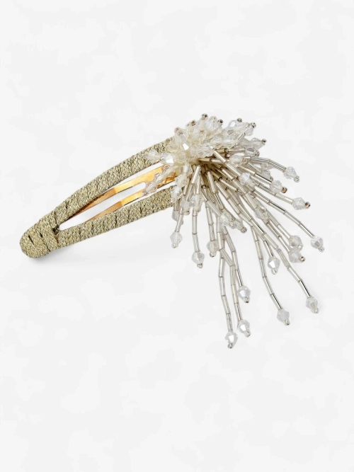 - Okrasna sponka za lase z biseri. Subtilna in elegantna – idealna za pričeske ob posebnih priložnostih in kot eleganten poudarek v vsakdanjih pričeskah.