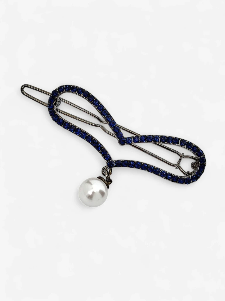 - Eleganten lasni vložek Azzurra Perla z modrimi kristali in biserom – idealen okras za lase za posebne priložnosti.