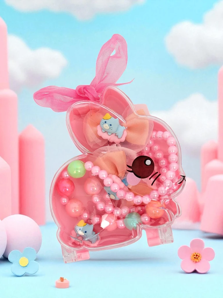 - Farebná detská súprava šperkov Bambina Allegra – náhrdelník, náramok a sponky do vlasov v rozkošnom puzdre v tvare zajačika.