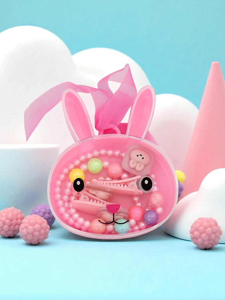 - Komplet nakita za otroke Bambina Dolce – ljubka torbica zajček, perlice, sponke, idealno darilo za deklice.