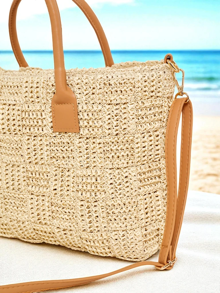 - Štýlová slamená taška s jedným priehradkou a vreckom, uzatvárateľná na zips. Ľahká a priestranná, ideálna na letné dni. Výborne sa hodí k ležérnym outfitom, poskytuje pohodlie a poriadok, pričom si zachováva módny, dovolenkový šarm. Perfektná na pláž aj p