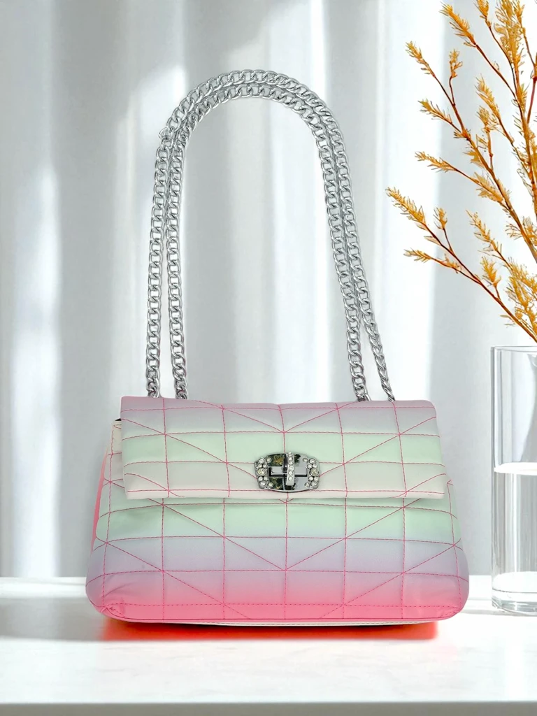 - Elegantná listová kabelka vyrobená z ekokože s ombre efektom. Zapínanie na zips a patentku. Kovová retiazka namiesto popruhu dodáva kabelke šmrnc. 1 priehradka, ideálna na najdôležitejšie veci na večer do spoločnosti a špeciálne príležitosti.