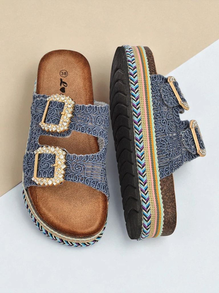 Royalfashion Dámske sandále s prackami zdobenými kamienkami GlamCork