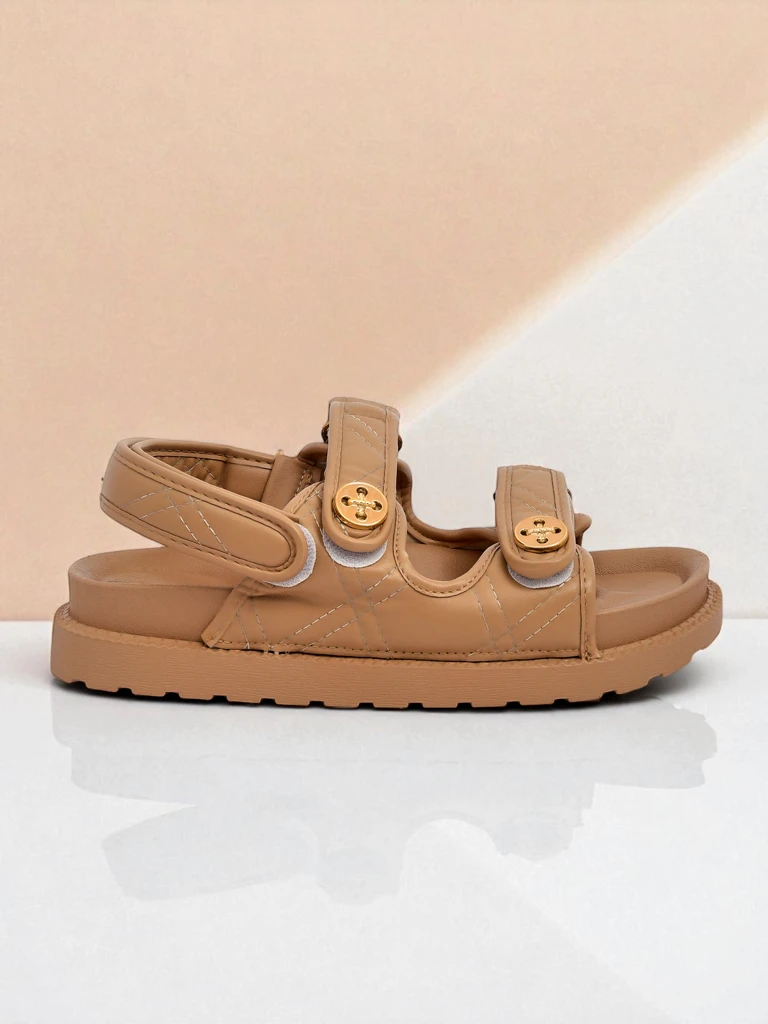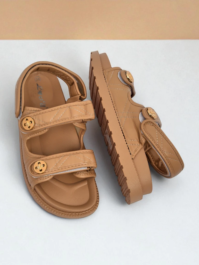 Sandali Callista Classico združujejo moderno udobje z brezčasno eleganco, ki jo navdihuje italijanski slog. Zgornji del je izdelan iz visokokakovostnega, mehkega eko usnja, ki zagotavlja dolgotrajno udobje nošenja in odpornost na intenzivno uporabo. Eko usnje, uporabljeno v sandalih, izpolnjuje evropske varnostne standarde in je enostavno za čiščenje. Debel, blažilni podplat iz lahke pene EVA odlično absorbira udarce in zagotavlja mehkobo koraka, tudi med celodnevno hojo. Dvostopenjsko zapenjanje na ježke omogoča individualno prilagajanje obutve obliki stopala, jo stabilizira in ščiti pred odrgninami. Zlati okrasni gumbi v obliki rože dodajo celoti subtilno eleganco. Sandali se idealno podajo k različnim stilom: 1. Mestni stil: kombinirajte jih s širokimi lanenimi hlačami in klasično belo majico – dobili boste izjemno moden, ležeren videz. 2. Elegantni minimalizem: kombinirajte jih s plisiranim midi krilom in preprosto ohlapno srajco. 3. Poletna sproščenost: obujte sandale k lahkotni obleki ali kratkim hlačam z majico na naramnice – odlično za sprehod ali poletni izlet. Za ohranjanje sandalov v idealnem stanju priporočamo, da jih obrišete z vlažno krpo in sušite stran od neposrednega vira toplote. Izogibajte se potapljanju v vodo in dolgotrajni izpostavljenosti UV-sevanju, kar lahko vpliva na barvo materiala. Trenutno v obutveni modi prevladuje trend athleisure in udobje za vsak dan – sandali z debelejšim podplatom in športnimi ježki so absolutni must-have. Model Callista Classico v bež barvi se prilega skoraj vsemu in zagotavlja stilski in vsestranski dodatek k vaši garderobi za sezono pomlad/poletje.