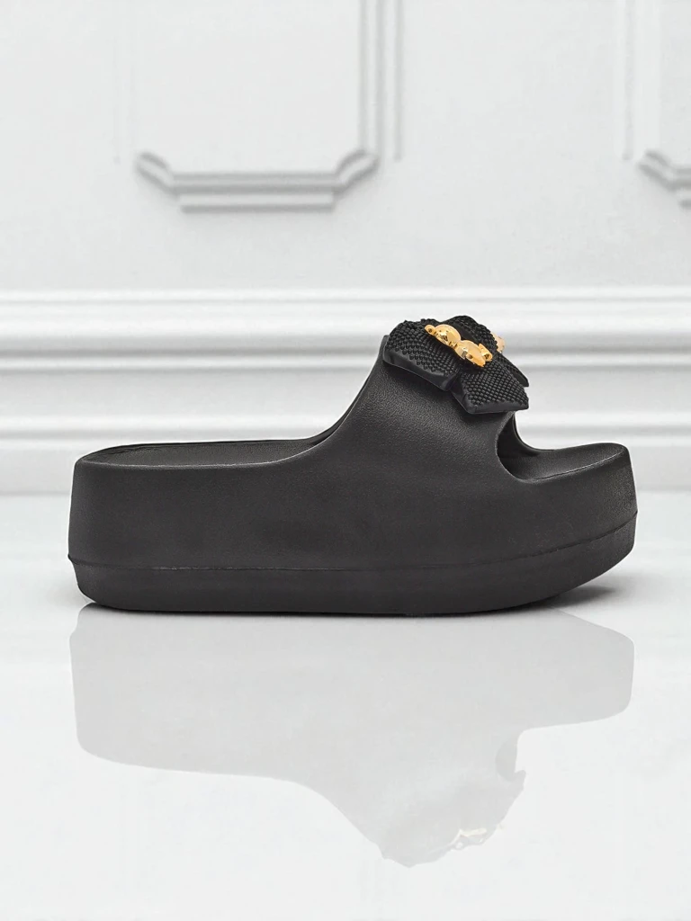 - Skvelé dámske gumové žabky na platforme. Na zvršku majú ozdobnú mašľu. Ideálna voľba na dovolenku!