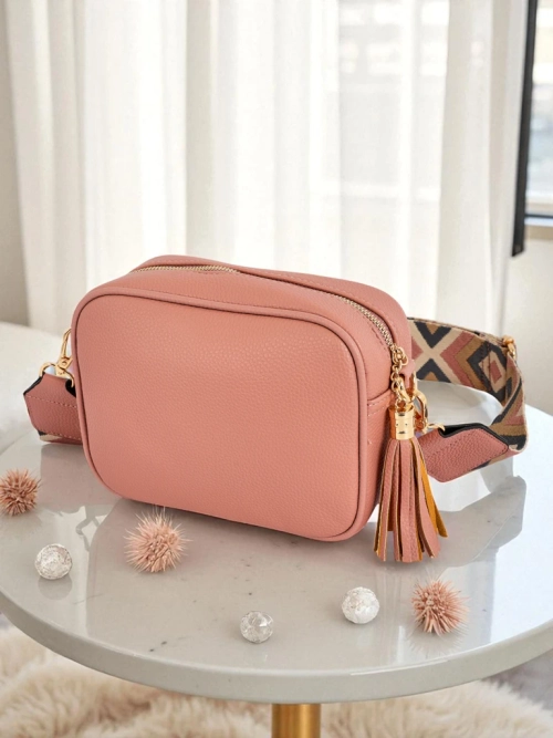 - Stilska majhna torbica iz eko usnja s pisanim pasom in ljubkim cofkom. 1 predal, 2 žepka, nastavljiv in odstranljiv pas. Idealna za vsak dan in za izhode – kompaktna, a sprejme vse, kar je pomembno.