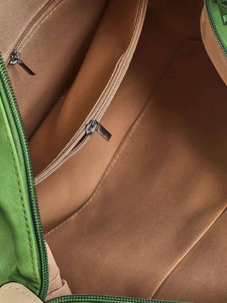 Ženska torbica Callista je izjemna kombinacija modernega stila in klasične elegance, ki jo navdihuje sredozemsko podnebje. Izdelana je iz visokokakovostnega eko usnja, ki uspešno združuje trajnost s skrbjo za okolje. Ta material je odporen na obrabo, enostaven za čiščenje in prijeten na dotik. Proizvodni proces uporablja certificirane tehnologije, ki zagotavljajo zaščito barve in strukture za dolgo življenjsko dobo.Funkcionalnost Calliste bo cenila vsaka ženska, ki išče prostor in udobje – prostorna notranjost dimenzij 40x32x12 cm omogoča, da s seboj vzamete vse potrebne predmete, pa tudi dokumente formata A4 ali prenosnik. Dodatni žepi – tako znotraj kot zadaj in spredaj na zadrgo – omogočajo organizacijo drobnarij in hiter dostop do ključev, telefona ali denarnice. Torbica se zapira s trdno zadrgo, ki zagotavlja varnost shranjenih predmetov.Univerzalna modra barva s kontrastnimi karamelnimi poudarki naredi to torbico izjemno vsestransko pri stiliranju. Tukaj so trije predlogi za kombiniranje:1. Pisarniški stil: kombinirajte s chino hlačami, belo srajco in mokasini – Callista bo dodala stil in hkrati poskrbela, da boste imeli vse, kar potrebujete za delo.2. Casual za v mesto: lahka midi obleka, superge in jeans jakna ustvarjajo moden, udoben videz za vsak dan.3. Športni stil za vsak dan: pajkice, ohlapna jopa in športni copati – prostornost torbice se bo izkazala za vsakodnevne aktivnosti ali nakupovanje.Čiščenje eko usnja je izjemno preprosto – zadostuje vlažna krpa ali nežno sredstvo za eko usnje, izogibajte se močnim detergentom. Torbico je priporočljivo shranjevati v zračnem prostoru, stran od neposredne sončne svetlobe, da dlje ohranite njeno intenzivno barvo.Izjemna oblika in uporaba visokokakovostnih materialov zagotavljata, da se Callista popolnoma prilega trenutnim trendom – prihajajoča sezona še vedno promovira velike, izrazite torbe v umirjenih barvah, ki so hkrati modne in praktične. Ta model bo dodal značaj vsaki stilizaciji in poudaril individualni stil moderne ženske.