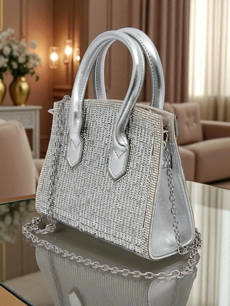 • Elegantna torbica z bleščečimi cirkoni, 1 predal, zapiranje na zadrgo. Elegantni ročaji in okrasna verižica dodajo eleganco. Idealna za posebne priložnosti – blestite s stilom!