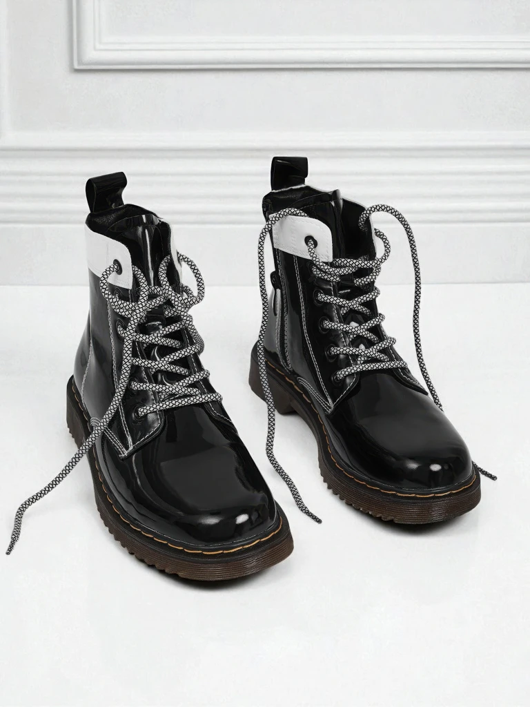 Ženski gležnjarji Perseida Nero iz ekološkega lakastega usnja, z vezalkami