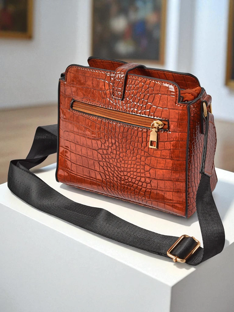 - Lakirana torbica iz eko usnja z elegantnim reliefnim vzorcem. 1 prostoren predal in odstranljiv, nastavljiv pas zagotavljata udobno nošenje. Eleganten izbor za vsak dan in za posebne priložnosti. Klasika, ki pritegne poglede.