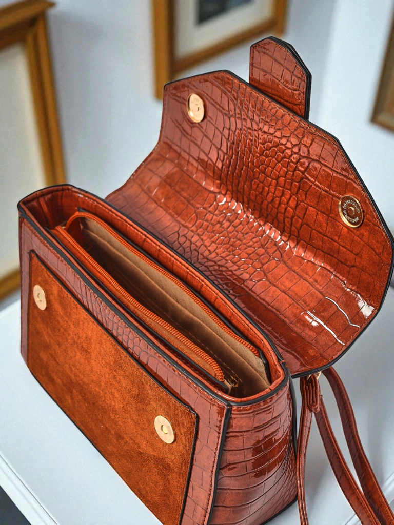 - Lakirana torbica iz eko usnja z elegantnim reliefnim vzorcem. 1 prostoren predal in odstranljiv, nastavljiv pas zagotavljata udobno nošenje. Eleganten izbor za vsak dan in posebne priložnosti. Klasika, ki pritegne poglede.