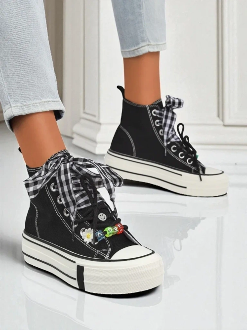 - Modne superge iz blaga na debelejšem podplatu. Okrašene s pisanimi vezalkami in perlicami. Udobne, lahke in elegantne – idealne za mestne stilske kombinacije in vsakodnevno nošenje. Udobje in trend v enem koraku.