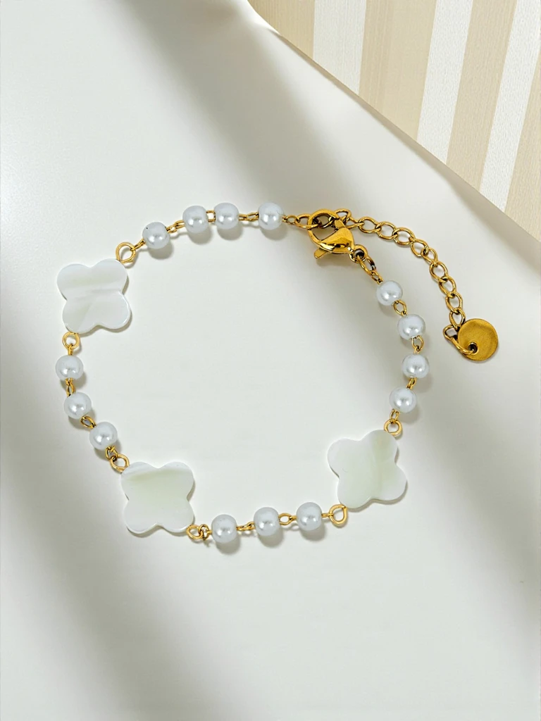 - Nežna zapestnica Aurelia Bianca z zlatom in cvetličnim motivom, idealna za vsako priložnost.