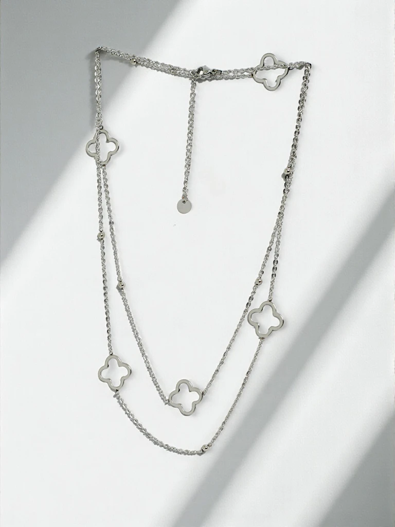 Srebrna ogrlica Livia Quattro Argento je kombinacija klasične elegance in modernega minimalizma. Izdelana je iz visokokakovostnega srebra čistine 925, ki je odporno na korozijo in prijazno do kože, kar potrjujejo mednarodni certifikati kakovosti. Srebro je bilo skrbno polirano do visokega sijaja s pomočjo specializiranih tehnik nakita, da se zagotovi edinstven sijaj in trajnost.Dekorativni elementi v obliki štiriperesnih detelj simbolizirajo srečo in izhajajo iz motivov, ki se uporabljajo v italijanski in bizantinski umetnosti. Zahvaljujoč njim je ogrlica idealna tako za vsakdanje kot tudi za posebne priložnosti. Nežna verižica zagotavlja lahkotnost in udobje nošenja, subtilna oblika pa bo dodala čar vsakemu stilu.Ogrlica se odlično prilega različnim kombinacijam oblačil:1. V casual stilu – nošena z belo srajco in kavbojkami bo poudarila naravno eleganco.2. V večerni različici – odlično se poda k črni obleki ali satenastemu topu.3. Za vsak dan – kombinirana s pastelnim puloverjem ali karirasto srajco bo dodala ženski čar.Da bi ogrlica čim dlje ohranila svoj sijaj, jo je priporočljivo shranjevati v suhi, zaprti škatli in se izogibati stiku z vodo, parfumi in kozmetiko. Za čiščenje je najbolje uporabiti mehko, suho nakitno krpo. Izdelek ima garancijo kakovosti proizvajalca.Srebrni nakit v minimalističnem slogu je trenutni modni hit – nežne, geometrijske oblike in univerzalnost omogočajo svobodno kombiniranje z drugimi dodatki. Ogrlica Livia Quattro Argento je odlična izbira za ženske, ki iščejo brezčasen, eleganten poudarek, ki bo poudaril individualni značaj vsakega stila.