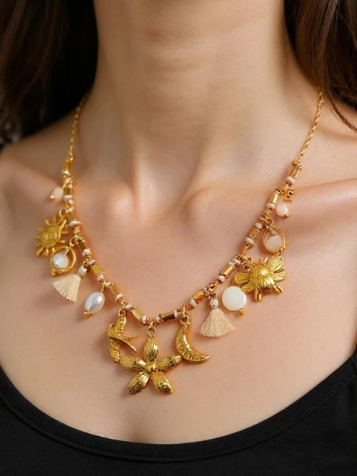 Ogrlica Aurora Floralis - Zlati Charmsi in Biseri Eleganza