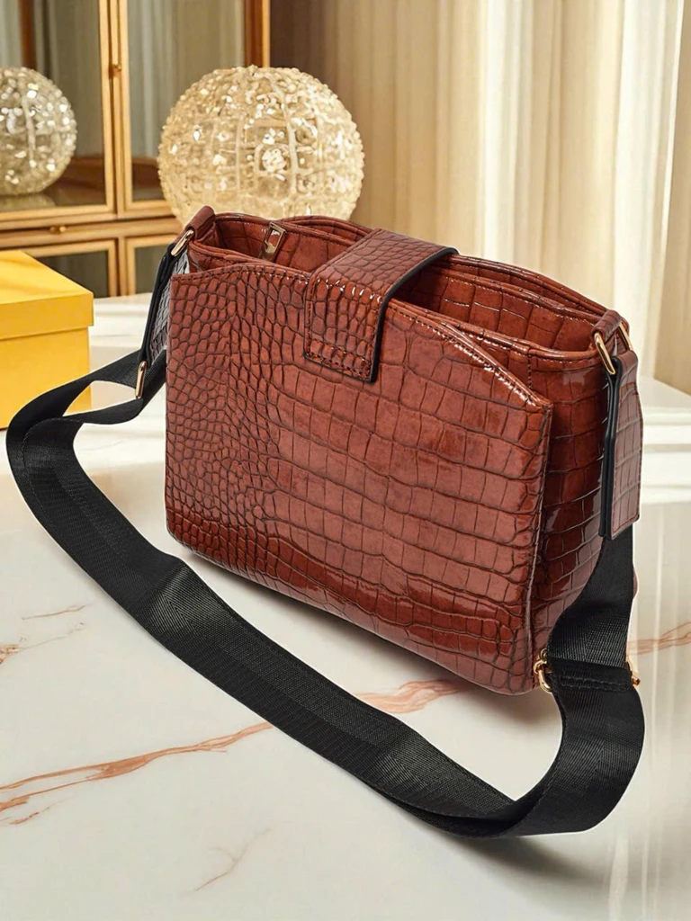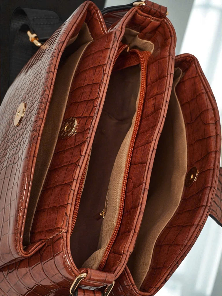 • Kvadratna torbica iz lakiranega eko usnja z reliefnim vzorcem. 1 predal, 3 žepki, zadrga, magnet in nastavljiv pas. Stil in funkcionalnost v popolni izdaji.