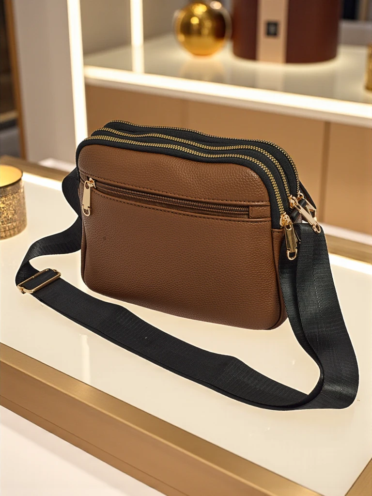 - Stilska majhna torbica iz eko usnja. 3 predelki, 2 žepka, nastavljiv pas. Idealna za vsak dan in za izhode - kompaktna, a sprejme vse, kar je pomembno.