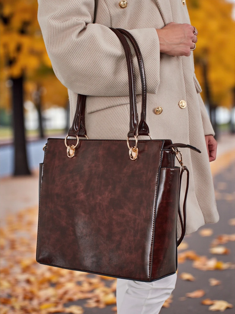 - Elegantna ženska torba iz ekološkega usnja. 1 predal s pregrado, 4 žepki, odstranljiv, nastavljiv pas. Idealna za delo in vsakdanjo uporabo – prostorna, modna in praktična.
