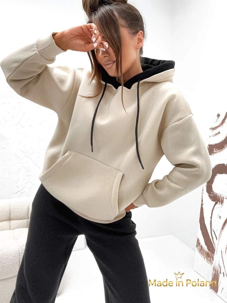 - Ženski komplet trenirke, izdelan iz prijetnega bombažnega materiala. Topla jopa s kapuco in žepi. Dolge hlače z elastiko v pasu in na hlačnicah, z 2 žepoma. Občutite stil v tem čudovitem kompletu!