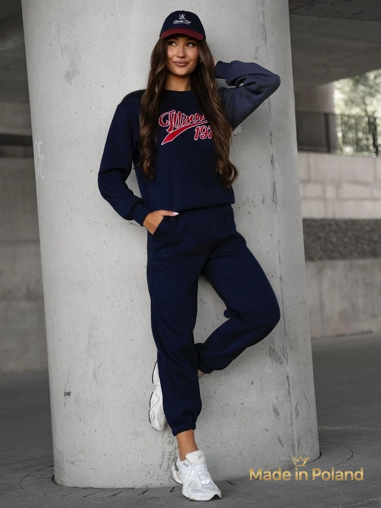 - Ženski komplet trenirke, izdelan iz prijetnega bombažnega materiala. Pulover z okrasnimi napisi. Dolge hlače z elastiko v pasu in na hlačnicah, z 2 žepoma. Občutite stil v tem čudovitem kompletu!