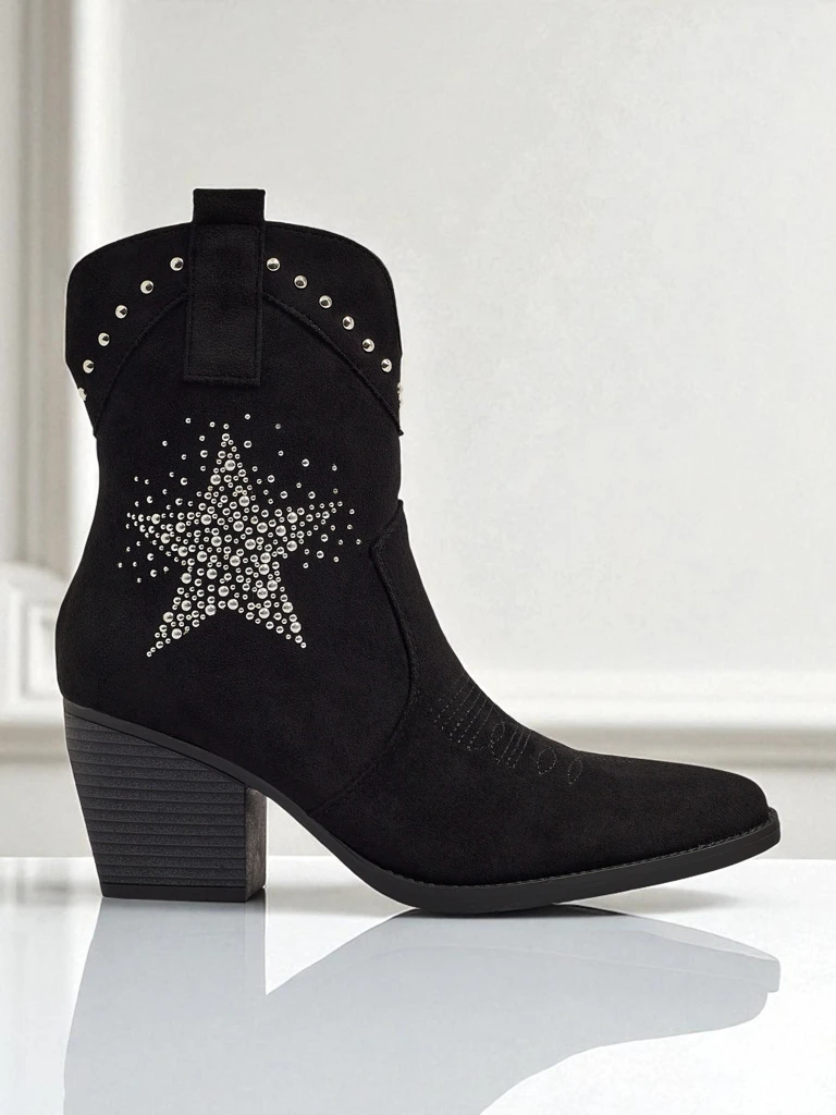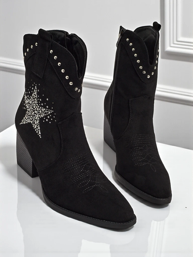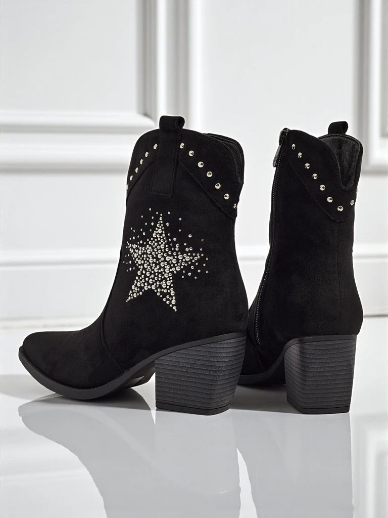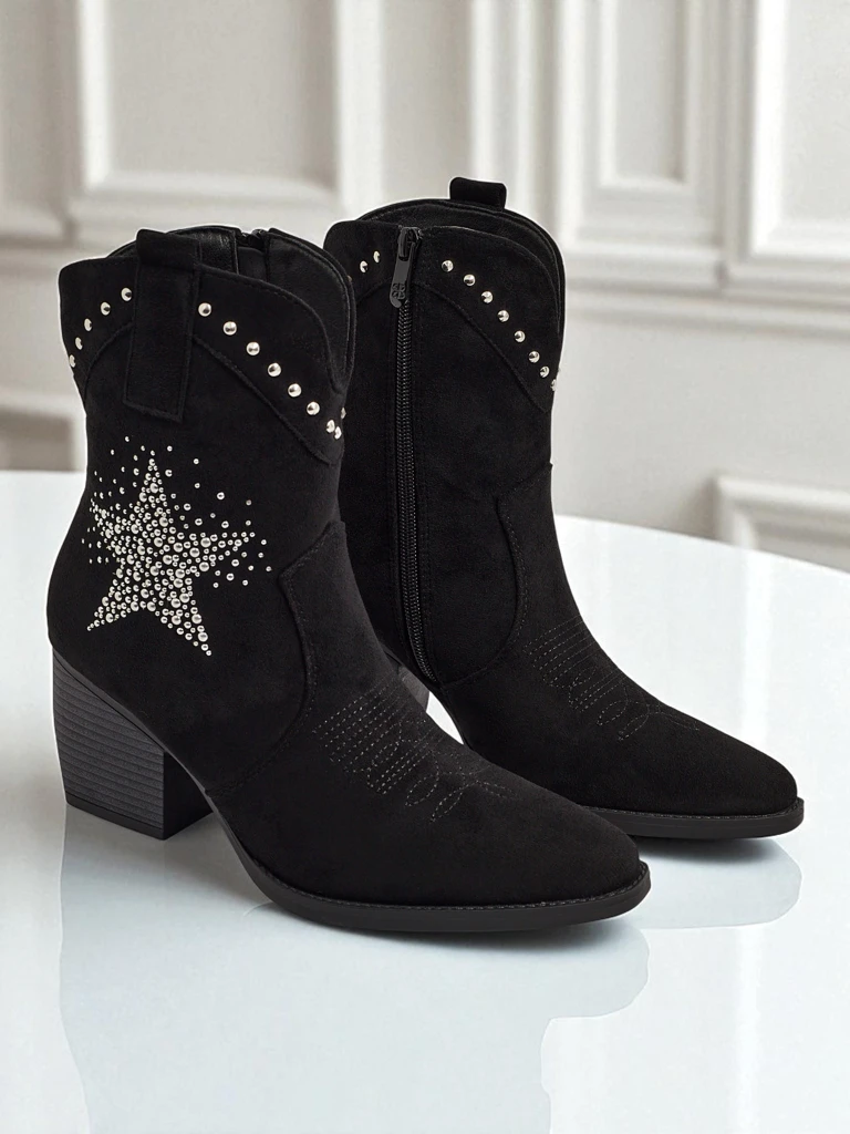 Ženski kavbojski škornji s peto in okrasno zvezdico iz cirkonov FableStray