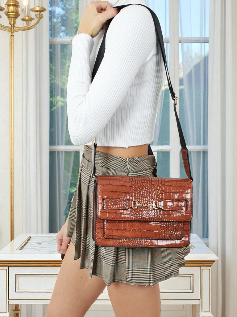 - Torbica iz lakiranega eko usnja z reliefnim vzorcem. 1 predal, 3 žepki, zadrga in nastavljiv pas. Stil in funkcionalnost v popolni izdaji.