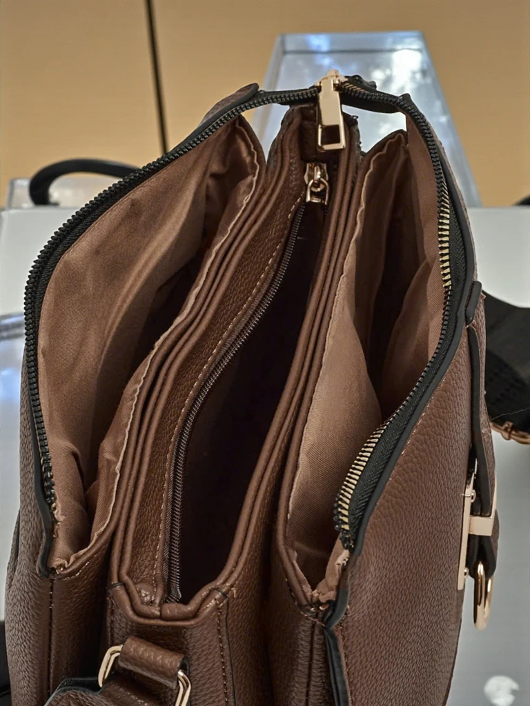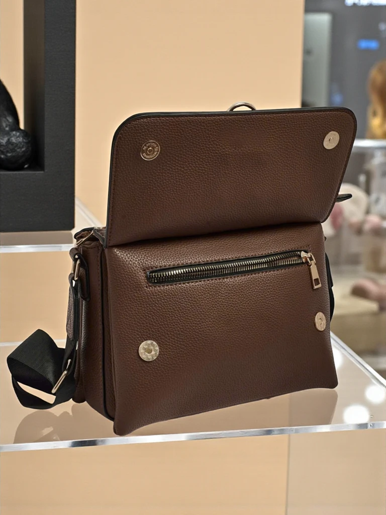 - Majhna torbica, izdelana iz kombinacije eko usnja. 3 predelki, 4 žepi, zadrga in nastavljiv pas. Stil in funkcionalnost v popolni izdaji.