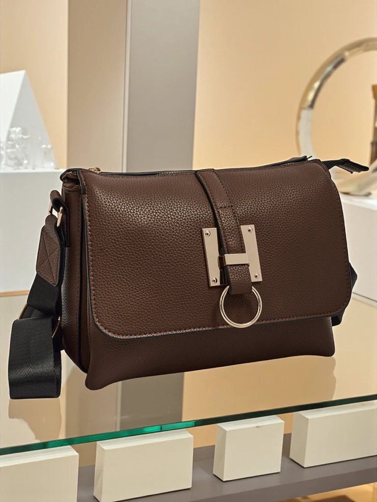 Torbica ima dimenzije: 20 cm višine, 26 cm širine in 12 cm debeline, zaradi česar je idealna za potrebne predmete, vendar ni primerna za format A4. Zaradi modnega dizajna brez vzorca se odlično ujema z različnimi stili.