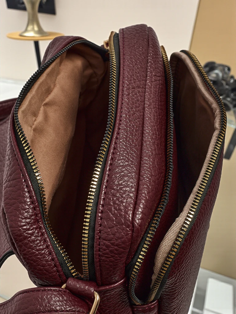 - Univerzalna torbica z zadrgo in magnetom, izdelana iz ekološkega usnja. Model ima 1 predal in žep na zunanji strani. Dodatno ima nastavljiv pas. Idealna za vsak dan!