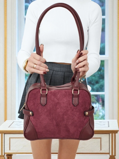 • Elegantna ženska torba iz eko semiša z vstavki iz ekološkega usnja. 1 predal, 4 žepi, odstranljiv in nastavljiv pas. Idealna za delo in vsakdan – prostorna, modna in praktična.