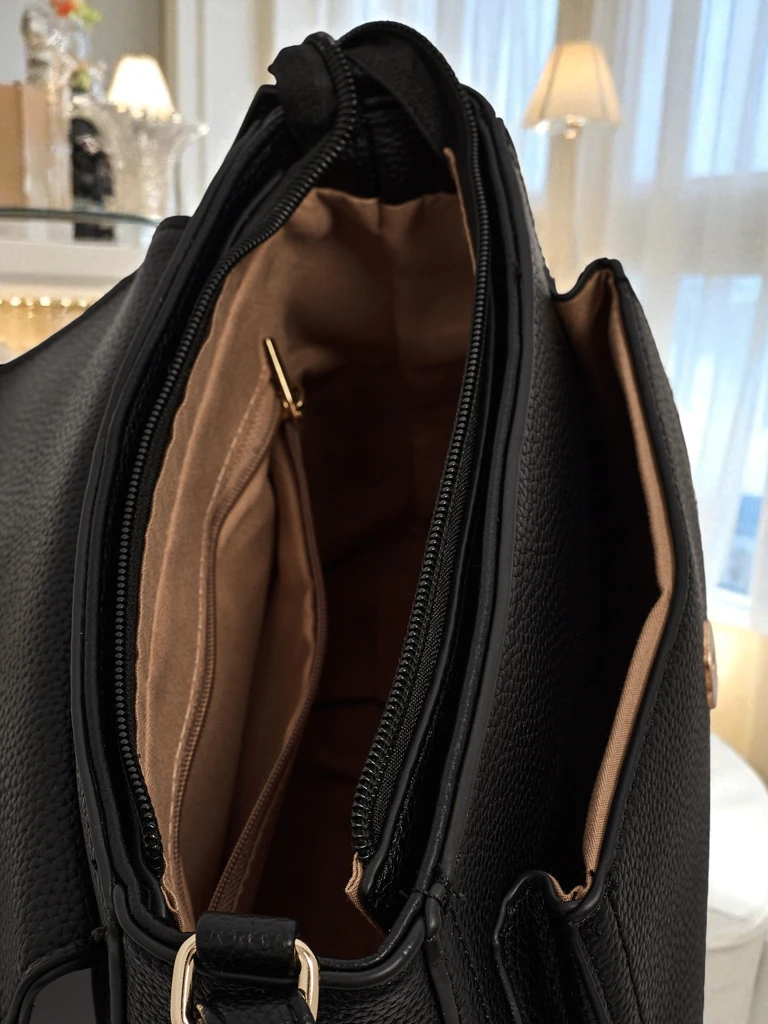 - Majhna torbica, izdelana iz kombinacije eko usnja in eko semiša. 1 predal, 3 žepki, zadrga ter odstranljiv, nastavljiv pas. Stil in funkcionalnost v popolni izdaji.