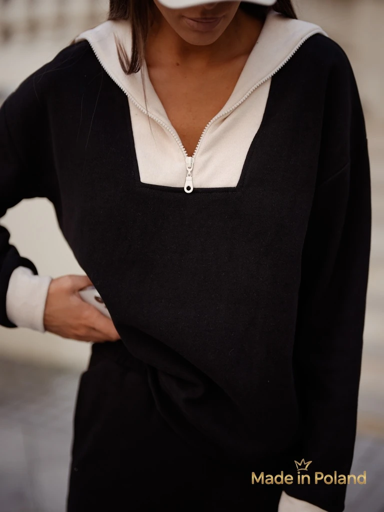 - Ženski komplet puloverja, izdelan iz prijetnega bombažnega materiala. Bluza ima zadrgo pri dekolteju. Dolge hlače imajo elastiko v pasu in 2 žepa. Občutite stil v tem čudovitem kompletu!