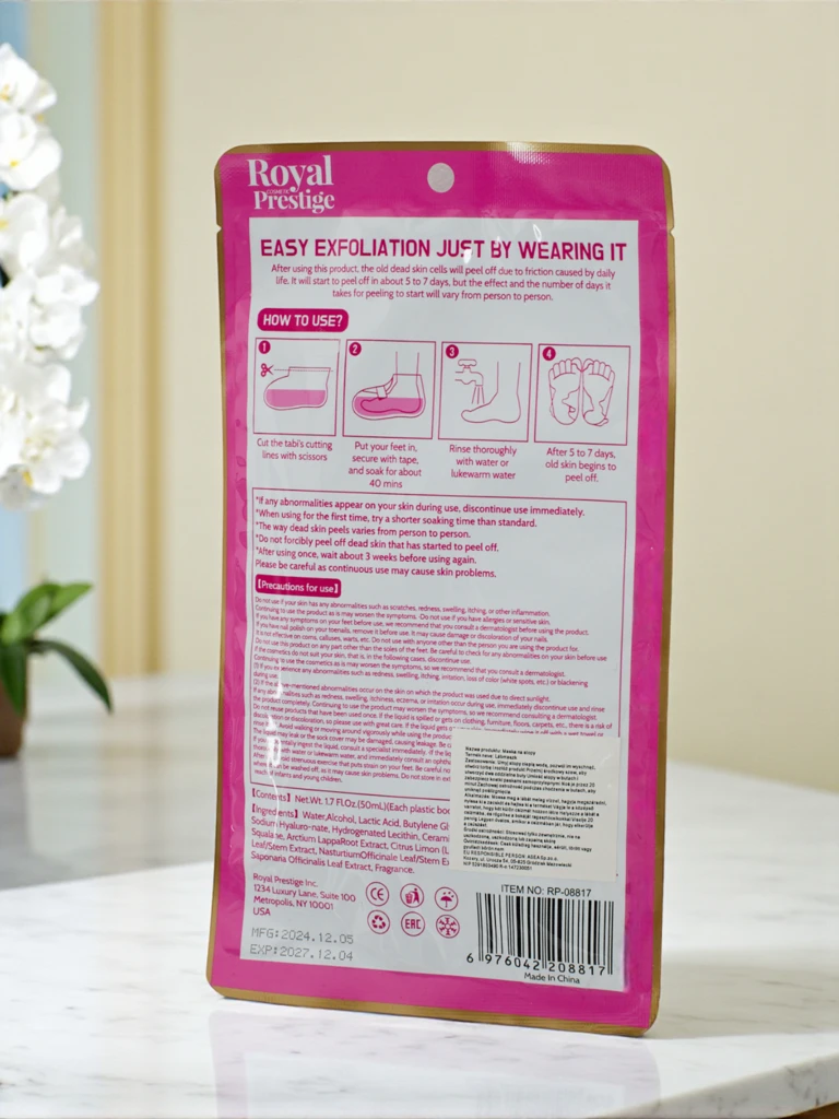 Keratin Bye! Ekspresowy Peeling Stóp to rewolucyjny produkt, który wykorzystuje nowoczesną technologię i starannie dobrane składniki, aby skutecznie usunąć martwy naskórek i sprawić, że skóra stóp stanie się jedwabiście gładka. Główne składniki aktywne to kwasy AHA i PHA, które delikatnie, ale skutecznie złuszczają naskórek, usuwając zrogowaciały naskórek. Produkt jest łatwy w użyciu – wystarczy nałożyć na stopy i pozostawić na 40 minut. Już po kilku dniach zauważysz widoczne efekty w postaci miękkiej i nawilżonej skóry.