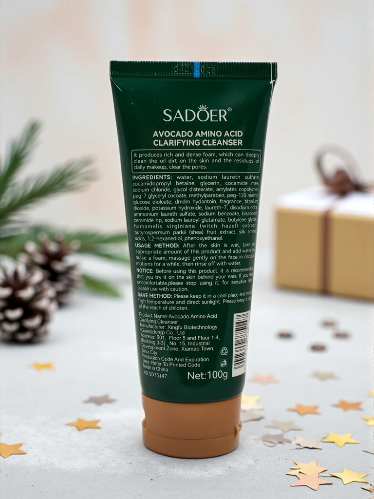 Sadoer Praznični Gel za čiščenje obraza z Avokadom in aminokislinami