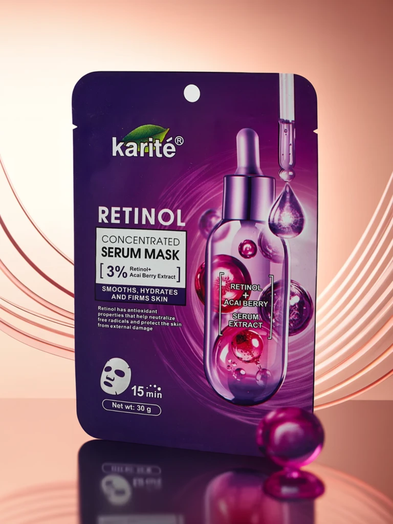 - Maska za obraz z retinol serumom intenzivno obnavlja in gladi kožo. Retinol pomaga zmanjšati gube, izboljšuje čvrstost in tonus kože ter jo pušča sijočo, mehko in pomlajeno.