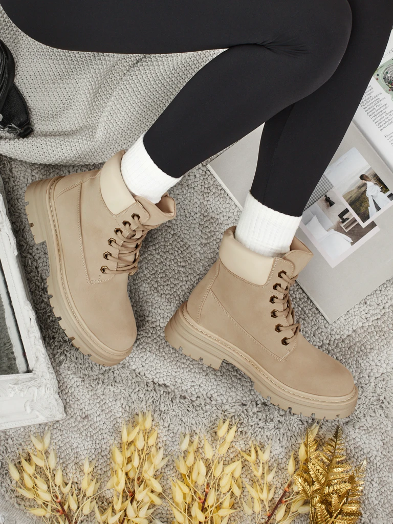 - Ženski pohodniški gležnarji z vezalkami. Material izdelave je ekološko usnje. V notranjosti je vložek iz ekološkega usnja. Idealni za zimski čas!